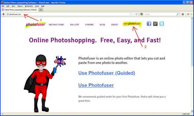 1: apuntar tu navegador favorito a http://photofuser.com. Firefox y Chrome funcionan mejor, Opera no es mala, IE9 funciona sobre todo y no ha sido probado Safari.