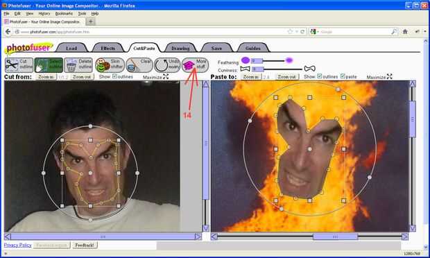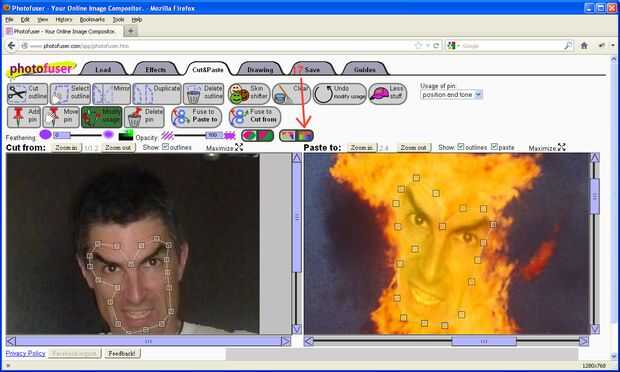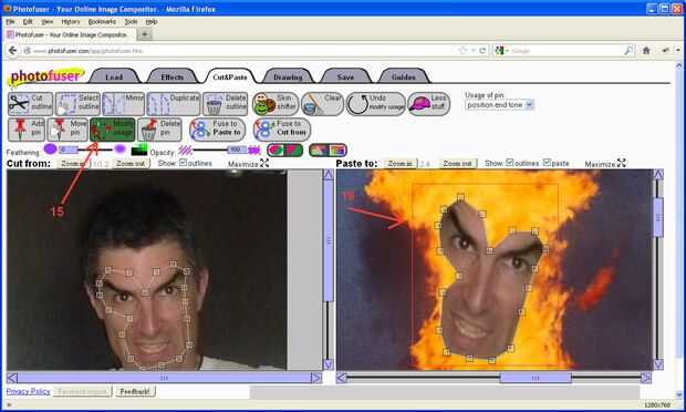 15: los pasos siguientes son para dar la cara la misma coloración como el fuego. Hacemos esta usando una característica llamada "Tonos de partido". Pero antes nos permiten tonos de partido, tenemos que indicar donde queremos la imagen pegada la coloración para que coincida con. Para ello, utilice la herramienta de "Uso de modificar", así que, haz clic en su botón.