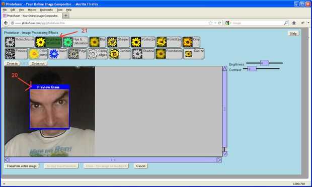 19: haga clic en la imagen de la cara se abrirá el cuadro de diálogo ventana de efectos de procesamiento de imagen. Esto puede tomar unos segundos asi que tengan paciencia.