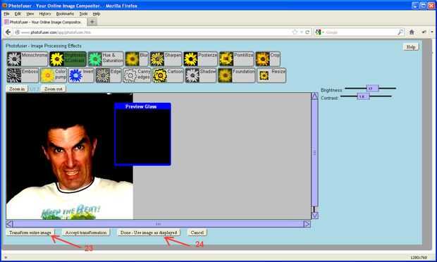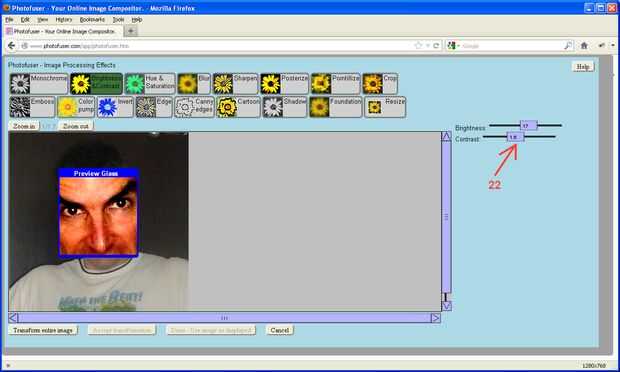 22: ajuste el control deslizante de "Contraste" y posiblemente el regulador de "Brillo" hasta que la imagen en el panel de vista previa se ve satisfactoria.