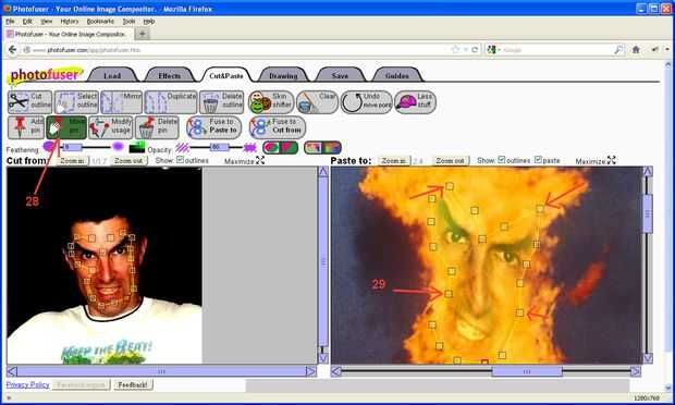 27: voy a hacer la imagen pegada parcialmente transparente para que la textura de la llama subyacente muestra a través de. Para ello, ajuste el deslizador de opacidad.