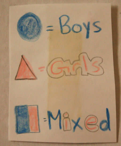 En cuanto a la elección de sus diseños para la su tablilla, puede resultarle fácil saber cuales diseños son para los niños, niñas o ambos. Pruebe esta idea! Crear un gráfico clave que ayudará a los clientes a visualizar que diseños encajarán perfectamente entre sus géneros. Si los diseños son para los niños, crear un círculo azul. Diseños femeninos Haz un triángulo rosa. Finalmente, para los diseños que son para dos niñas y niños (o mezclan como algunos lo llaman), dibujar un cuadrado y de color mitad rosa y mitad azul.