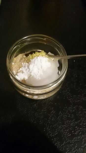 Coge una pequeña porción de mezcla y empezar a frotar sobre la piel, los ingredientes actuará como exfoliante por lo que es bueno que frote suavemente con un movimiento circular hasta que sienta como es suficiente...