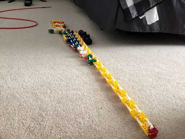 es tomboyRmede KVG carabina. Verdadero gatilloPaso 1: barril Esta es la parte delantera del cañónPIC 1: Hacer 7 de estosFoto 2, 3, 4: Dos conectores rojo con un conector gris en el medioFig 5: Conecte esteFoto 6: Dos conectores verdes con una barra b