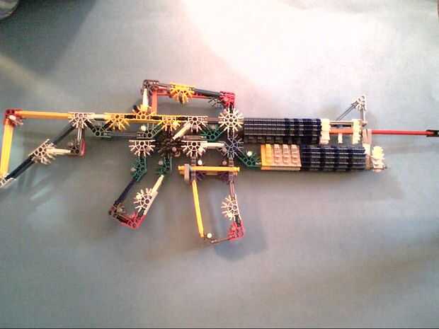 le mostrará cómo hacer un relvolver semi-auto rifa de K'Nex. Usted puede hacer tantos barriles como quieras. Estas son las revistas. También se pueden poner tantas bandas de goma como tu quieras pero no poner demasiado para que no se tire el pasador