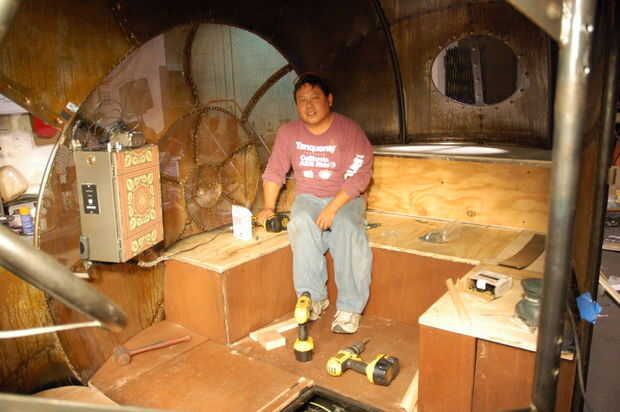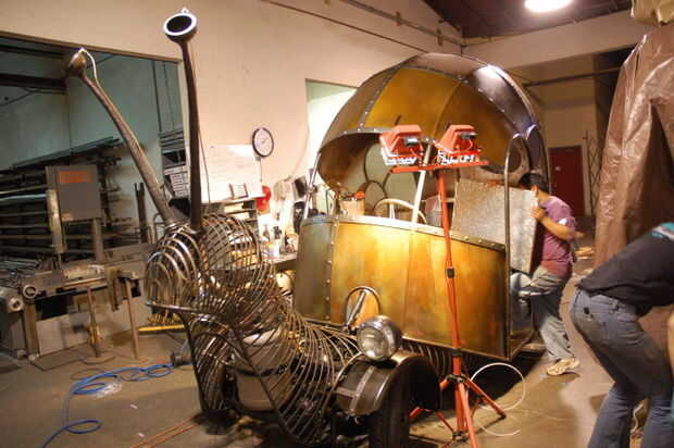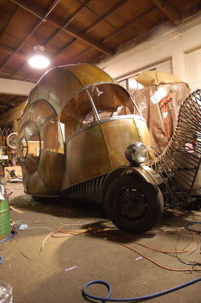 Ahora las partes que habían sido quitadas por la pintura podrían ser reensambladas. Los defensas/faros, cableado, tableros de piso, esteras del piso, asientos, espejo, tablero, llama efectos, palaquin y LED de iluminación fueron instalados. Una medida de cambio fue forjada a mano, aprovechado para montar los hilos de rosca métricos en el viejo y una pelota soldada a la parte superior. Un ajuste final al ángulo del eje se hizo caliente en el coche para asegurarse de que era justo. El palaquin añadido un viejo foco militar de un buque de la armada. Cinturones de seguridad estaban atornillados a los asientos delanteros y más conectado al piso y los asientos traseros. unos cojines LED velas...