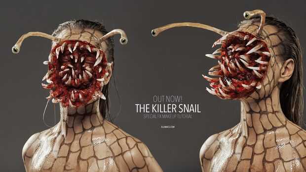 Gire a la cabeza en la fiesta de halloween con este maquillaje de épica caracol asesino.