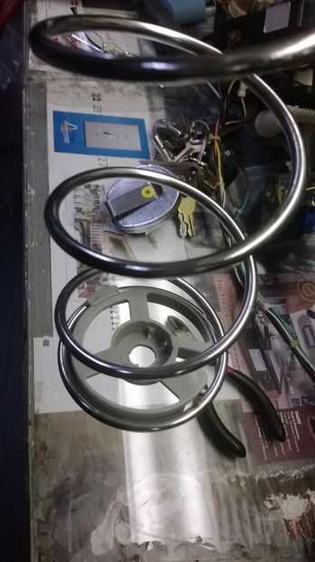 con algunas piezas antiguas, un interruptor más dévil y tubo negro hice esta lámpara. El atenuador ha sido presentada e insertada en la válvula de agua para actuar como un interruptor más dévil. Conexión de la lámpara que pulirse para que quepa dentr