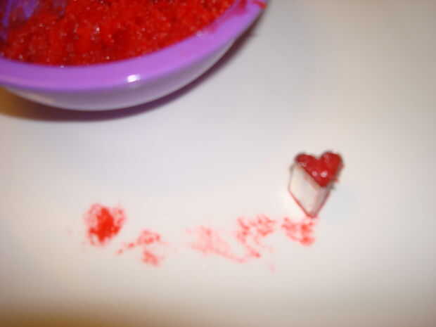 • Con extremo redondeado de la broqueta ligeramente golpee abajo el azúcar para hacerlo firme.