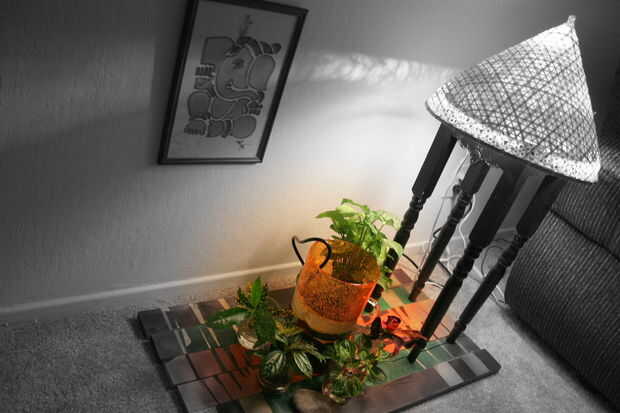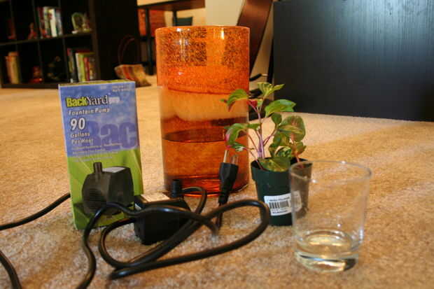 -Un recipiente que albergará el agua y la bomba. He usado un frasco de vidrio alto encontró en un marshalls para $10.
