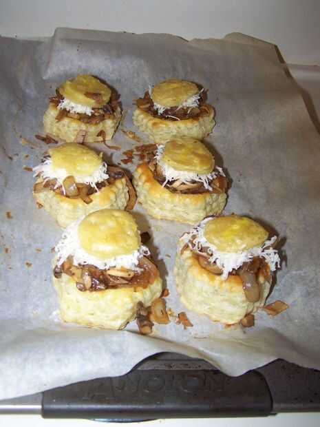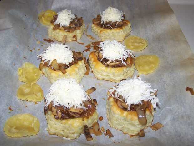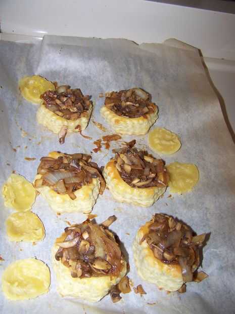 Caramelizada, cebolla, champiñón y tartaletas de Suiza (3 / 4 paso)