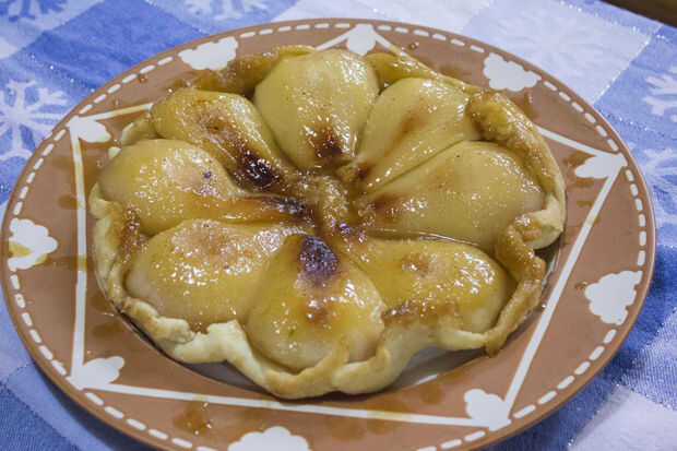 Es otoño y todas las granjas alrededor de mí están vendiendo las manzanas y las peras. No me gusta los pasteles que son sólo dulces, así que decidí hacer una tarta de pera que no es un desierto sino más bien un arrancador o un aperitivo. Revisé lo qu
