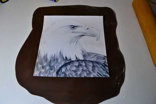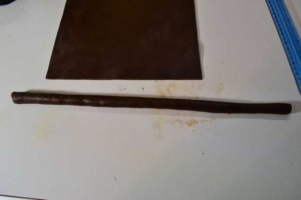 Empezar a amasar para hacer flexible ~ debe ser como plastilina o arcilla. Cuando es suave en todo, rodar hacia fuera delgada. Para evitar que el chocolate se pegue a la mesa, ligeramente espolvorear con maicena. El tamaño que se necesita para rodar hacia fuera a dependerá del tamaño de la imagen que se terminan quemando. Hacen el chocolate 1" más grande todo alrededor. Cortar con un cuchillo.