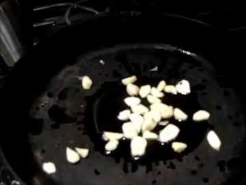 Picar el ajo en trozos pequeños y mezclar en la sartén.