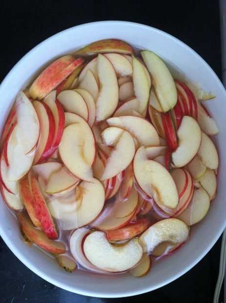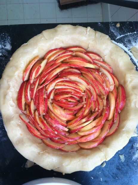 Tus rebanadas de manzana en círculos apretados, concéntricos, comenzando en el borde externo de la corteza de la capa. Que terminé tener que scoot las rebanadas en más y más mientras trataba de meter más en.