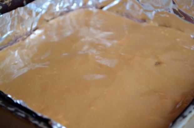 -Vaciar la cacerola que contiene el caramelo en un recipiente grande que puede contener todo.