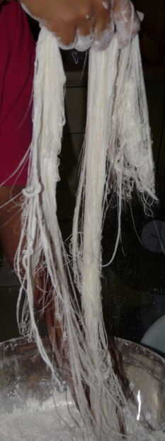 Ahora donde vivo es más bien conocida como caramelo de barba de dragón, pero en esencia es un tipo de caramelo tirado como chicloso. También puede ser descrito como un caramelo de algodón mano-tirado.