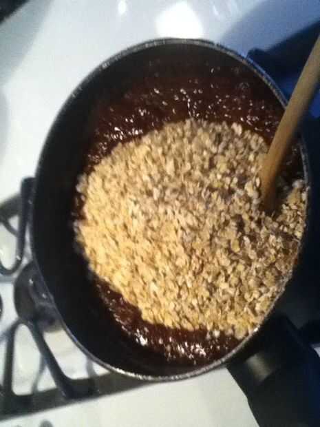 No hay galletas de avena Chocolate hornear son maravillosa, sana y sin embargo muy fácil de hacer galletas. Estos se hacen en microondas y la necesidad de ninguna preparación.Ingredientes:Avena triturada-1 taza de mantequilla ablandada-3/4 taza miel,