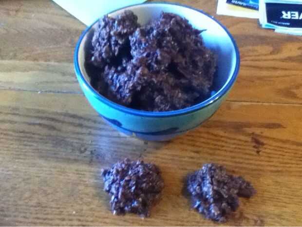 No hay galletas de avena Chocolate hornear son maravillosa, sana y sin embargo muy fácil de hacer galletas. Estos se hacen en microondas y la necesidad de ninguna preparación.Ingredientes:Avena triturada-1 taza de mantequilla ablandada-3/4 taza miel,