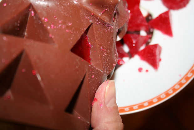 Deje que los moldes se enfríe durante varios minutos antes de manipular los moldes. Unos 10-20 minutos después de que han sido eliminados, sus dulces estará listos para retirar. Simplemente invierte el molde y tipo de había exprimido hacia fuera.