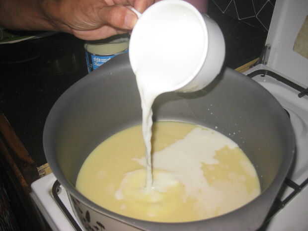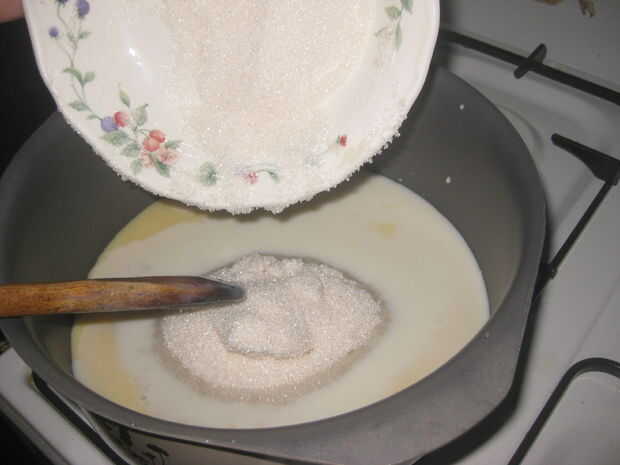 Paso 1: Adición de leche condensada, agua y azúcar