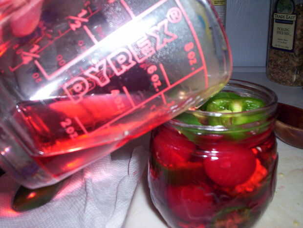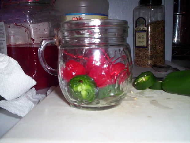Aunque la salmuera es una salmuera dulce, estos bocadillos son picantes. Mi esposo piensa que las cerezas son realmente más calientes que los jalapeños.