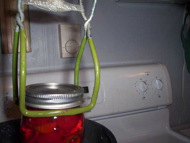 Retire los frascos de la olla y coloque en una toalla se enfríe. Recuerde que estos recipientes han sido en caliente agua hirviendo durante diez minutos. Están calientes.