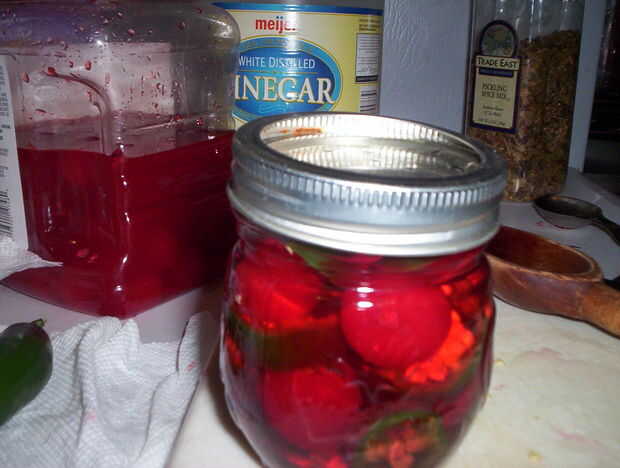 Generalmente en un cracker servir con queso crema. Supongo que no tenía ningún queso de crema. Muestran ellos en un chip de tortilla con crema agria o funciona de manera. El queso crema o crema agria se mellow hacia fuera el calor. Mi esposo solo los come directamente de la jarra.