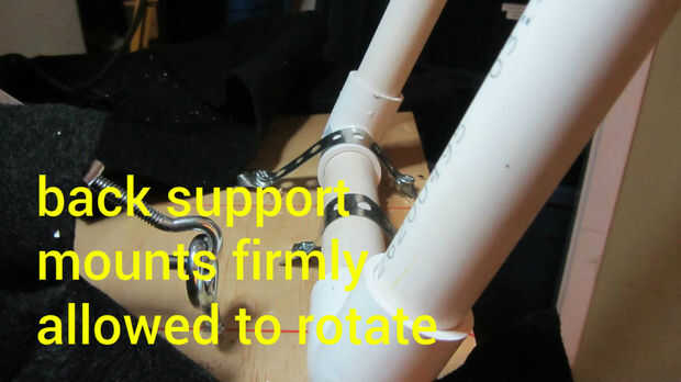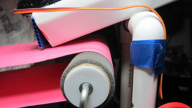 Crear un marco rectangular de PVC que está instalado en la plataforma en la parte de atrás es lo suficientemente alto para crear un ángulo obtuso donde puede mover el caramelo 12" en cerca de 1.5 segundos. Monte por el apoyo.