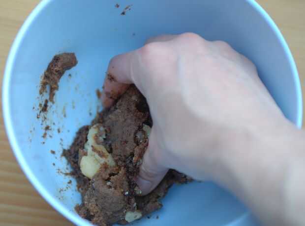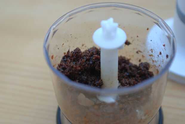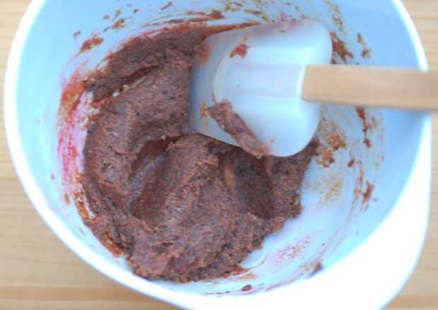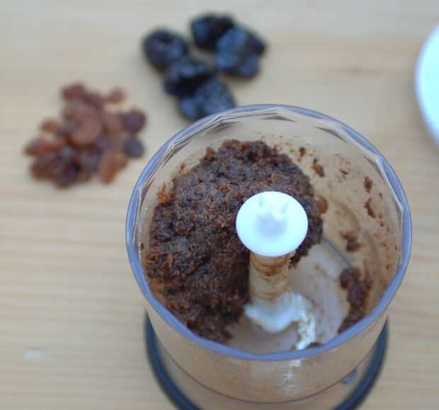 Picar las ciruelas y pasas (excepto para una cucharada de cada uno) en un procesador de alimentos hasta que se convierte en una bola pegajosa. Transferir a un bol y mezclar con el mazapán. (Luego añadí algún colorante rojo a la mezcla pero no tenía mucho efecto ya que la masa es bastante oscura en color. Puede omitir esto.)
