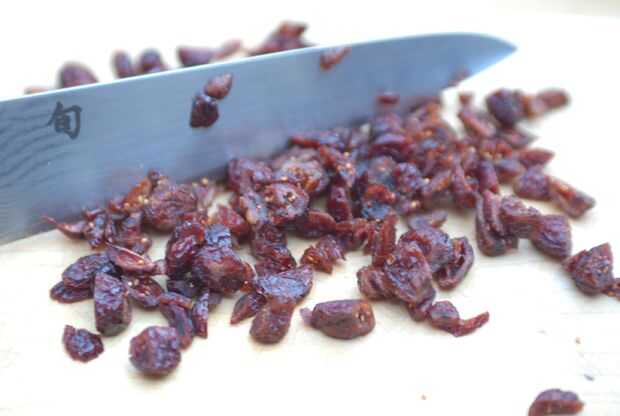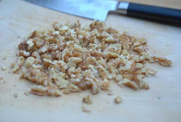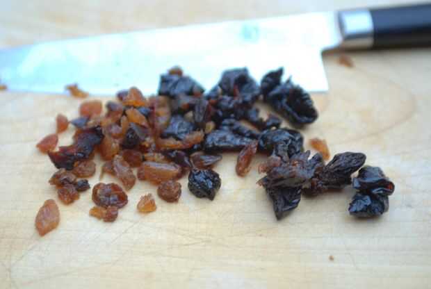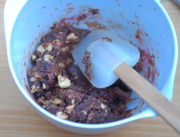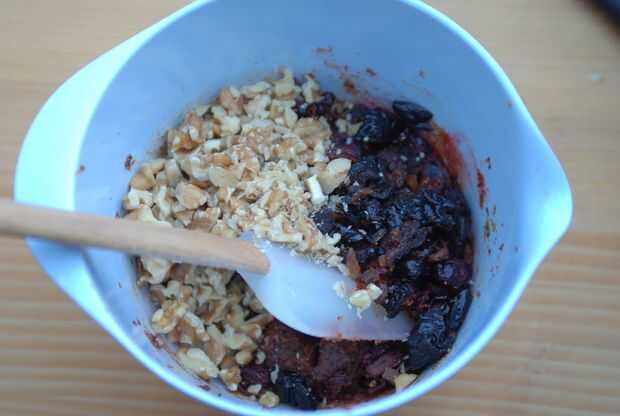 Aproximadamente picar los restantes frutos secos y las nueces. Añadir a la masa pegajosa y mezcle bien.