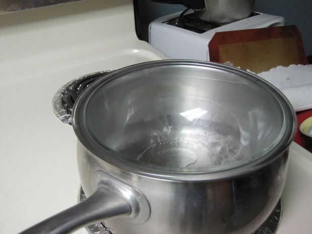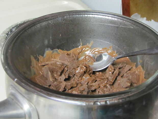 El calor del residuo del agua derrite el chocolate, si no derriten completamente puede encender el calor un poco al proceso de fusión.