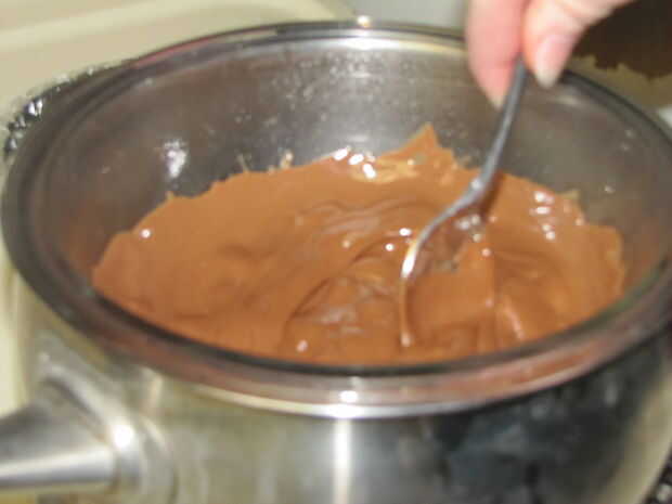 Una vez que el agua en la parrilla doble comienza a hervir apagar el fuego y agregar el chocolate