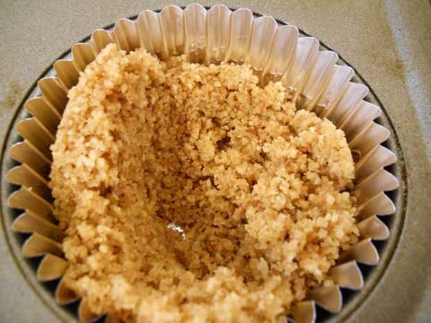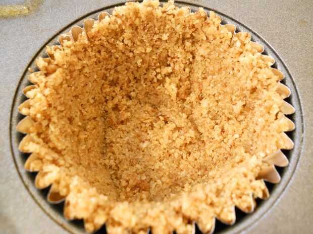 4. Añadir sobre una media cucharadita más de la mezcla de corteza para cada taza de la lata del mollete y pulse en las partes inferiores de los trazadores de líneas