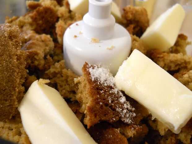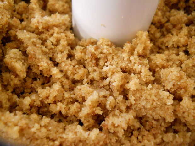 1. Combinar los trozos de galleta, mantequilla, azúcar morena y sal en un procesador de alimentos, pulsación hasta combinar