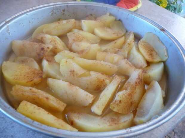 Colocar las manzanas en la bandeja para hornear con mantequilla. Espolvorear con azúcar morena y canela. Cubrir bien con papel de aluminio y hornear durante 40-45 minutos hasta que las manzanas son de horquilla-curso.