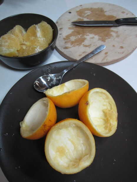 Cortar las naranjas por la mitad y sacar con una cuchara.