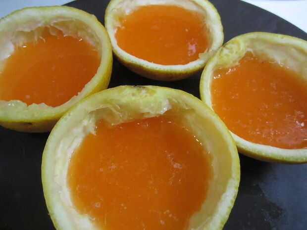 Vierta una pequeña cantidad en cada naranja.