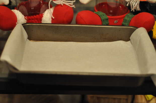 Una hoja de pan o galleta de cake forrada con papel sulfurizado. Dependiendo de lo grueso que desee tus caramelos. Yo uso un molde para pasteles 13 x 9.