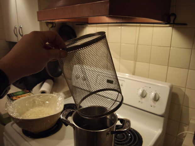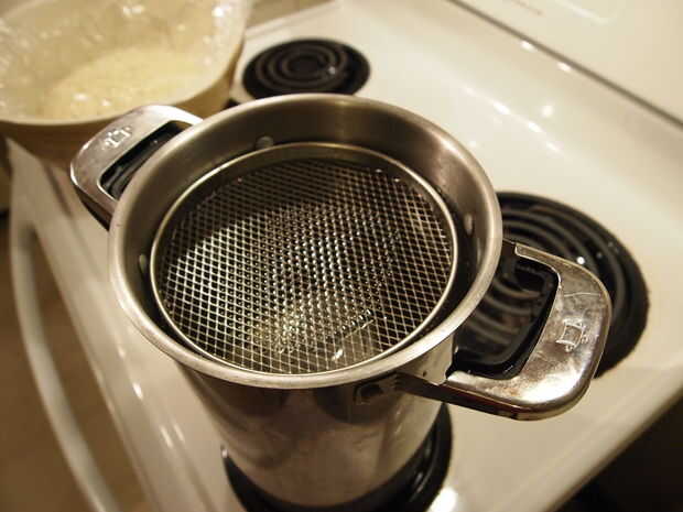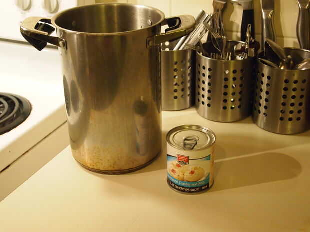 Así que idealmente desea prepararlo en su bote más alto más grande que tienes. De esa manera se minimiza tener que levantarse, continuar todo el camino a la cocina, dibujada algunos agua "qué aburrido" y top tu olla. Usé una olla de espárragos, sólo una olla alta con un filtro desmontable. Usted realmente no necesita el filtro, pero inviértala y tirarlo encima de la lata mientras su cocina. Da un sens falsos de seguridad que debo dejar la olla hierva hasta quedar seco contiene la explosión azucarada. De todos modos, vamos sobre el procedimiento.