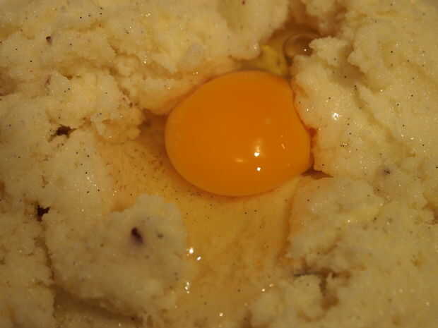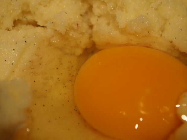 1. Añadir 1 huevo a la mezcla de crema y batirlo un minuto, cuando ya no se ve muy brillante