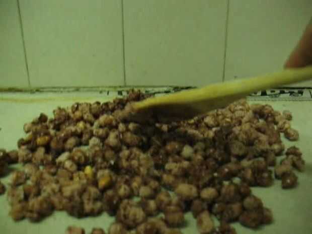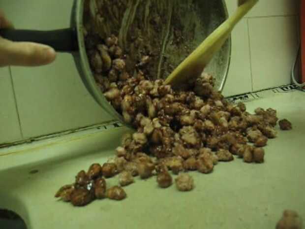 Mientras esté todavía caliente, tratar de separar los cacahuetes con la cuchara de modo que siguen siendo individuales