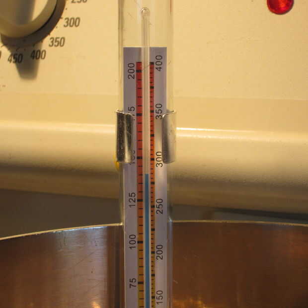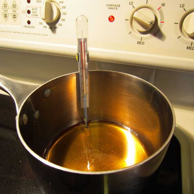 En una cacerola mediana a fuego medio-alto, lleva a ebullición 3/4 tazas de miel, de una variedad de tu elección, hasta 140ºC/185ºF.