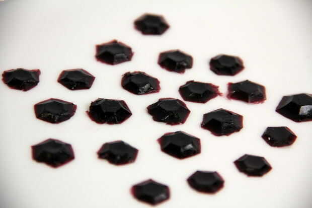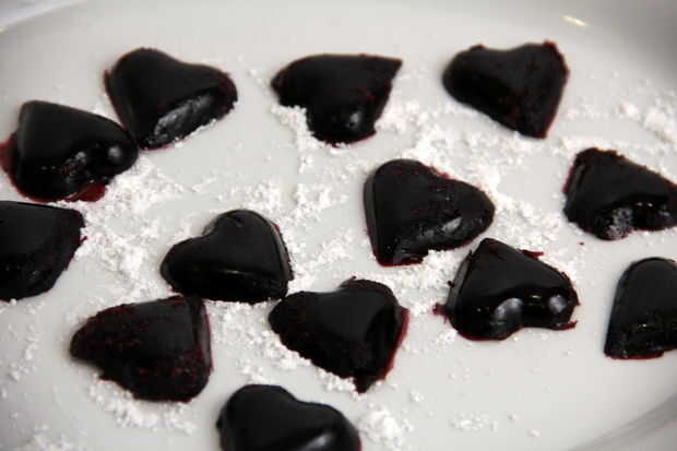 - Opcional: cubrir ligeramente con azúcar en polvo/maicena / una mezcla de ellos (dependiendo del dulzor deseado). Esto evita que las gomitas de pegarse junto.