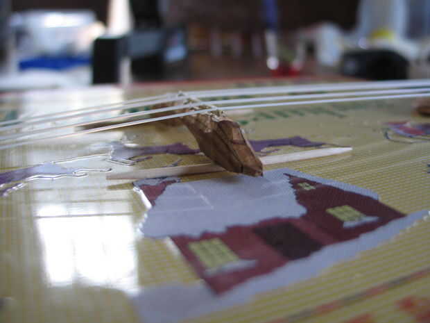Que podrá volver a haciendo el puente pronto. Por ahora, está acuñada con palillos de dientes. Esto hace el uke jugables y también facilita el ajuste del puente para compensar las longitudes de escala ideal diferente de cada cadena.