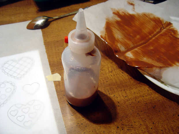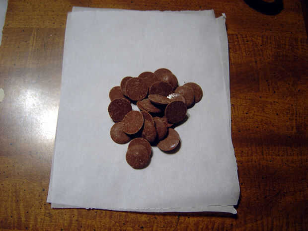 Asegúrese de que las botellas estén limpias y secas. Cortar un pedazo pequeño de pergamino (8 x 8" o algo así) y ponerlo en un plato. Poner alrededor de 15-20 obleas (de un solo color) en el pergamino, microondas según las instrucciones del paquete. La mina dijo a usar 50% de potencia durante 30 segundos, revolver, repetir. No cambian de forma si no revuélvalos. Encontré que tardamos entre 1 y 2 minutos para derretirles.