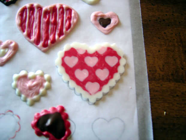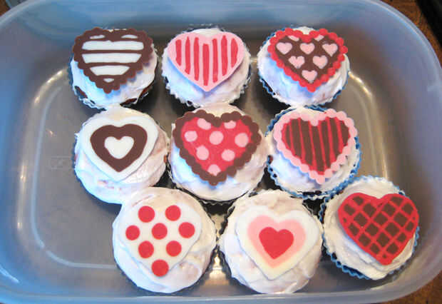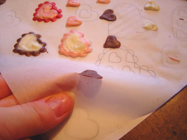 Puede poner solo el lado malo hacia abajo encima de un cupcake, pero si desea que ambos lados se vea bien puede pegar dos piezas 'malo' lados junto con un poco más dulces. Para llegar a pie en cupcakes o algo similar apenas utilice un cuchillo de mantequilla para hacer una pequeña incisión, luego empuje el caramelo en el corte.