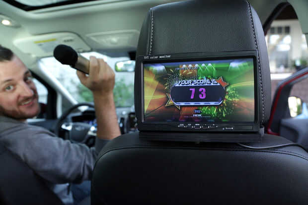 Como conductor eres Bienvenido a cantar, pero usted tendrá que mantener los ojos en la carretera. El sistema de monitor y el micrófono de karaoke es para los pasajeros en su coche sólo.
