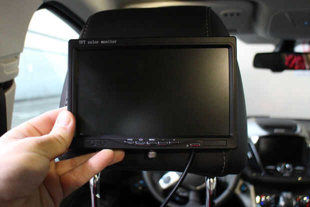 Yo sabía que quería tener las pantallas de LCD en la parte trasera de los reposacabezas del asiento delantero. Comentar la colocación, y tomaron medidas de las clavijas que sostienen el reposacabezas en el asiento.