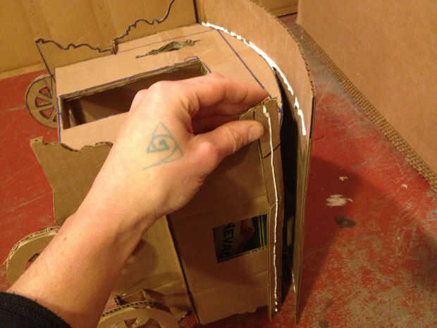Ahora es tiempo para pegar las solapas de la ranura de la cabeza. Debe doblar muy bien contra el techo arriba. Como mencionado, esto le ayudará a integrar la estructura de la caravana y evitará que un poco de desplazamiento de la caravana sobre la cabeza.